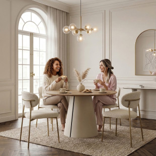 Cortic to praktyczny, okrągły stół rozkładany, który dobrze sprawdzi się w jadalni, salonie lub przestrzeni biurowej. Blat wykonany jest z płyty laminowanej i dostępny w wielu kolorach. Po rozłożeniu stół osiąga długość nawet do 176 cm, co pozwala na wygodne przyjęcie większej liczby osób.